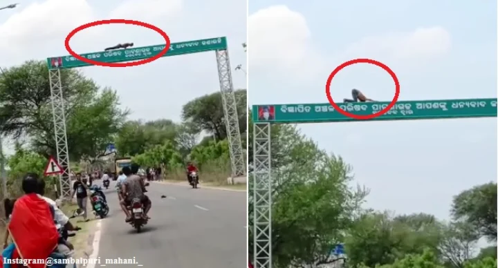 इंस्टाग्रामवर शेअर केलेला व्हिडिओ ओडिशातील संबलपूर येथील असल्याचे सांगण्यात येत आहे. तरी आम्ही हा व्हिडिओ कुठला आणि केव्हाचा आहे याची पुष्टी करत नाही. यामध्ये तुम्हाला एक मद्यधुंद व्यक्ती उंच साईनबोर्डवर पुश-अप करताना दिसत आहे. व्हिडिओ जसजसा पुढे जात आहे, तसतसे वाहने साइनबोर्डच्या खालीतून जाताना आणि त्या माणसावर ओरडताना दिसतात.